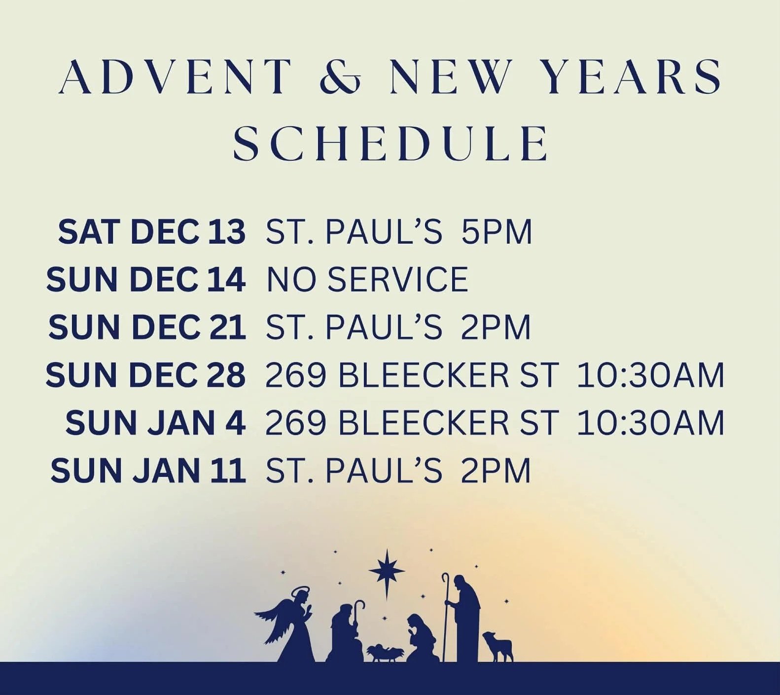 (SEE BELOW FOR SPECIAL ADVENT SCHEDULE)